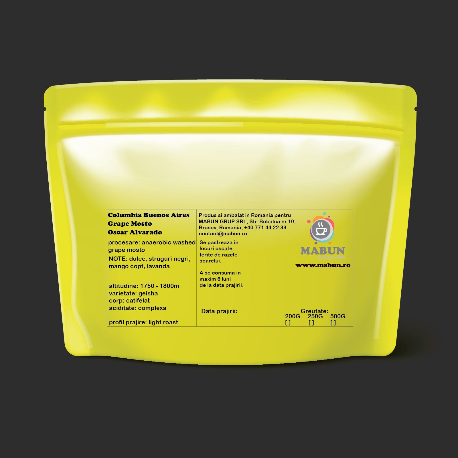 Descopera o cafea de specialitate exceptionala, cultivata cu pasiune in inima Columbiei, la Ferma Buenos Aires din regiunea Huila. Aici, solurile fertile si climatul ideal creeaza conditiile perfecte pentru a obtine boabe de cafea de cea mai inalta calitate. Soiul Geisha, renumit pentru complexitatea sa aromatica, este cultivat cu grija si respect fata de traditie, dar si cu o deschidere spre inovatie.