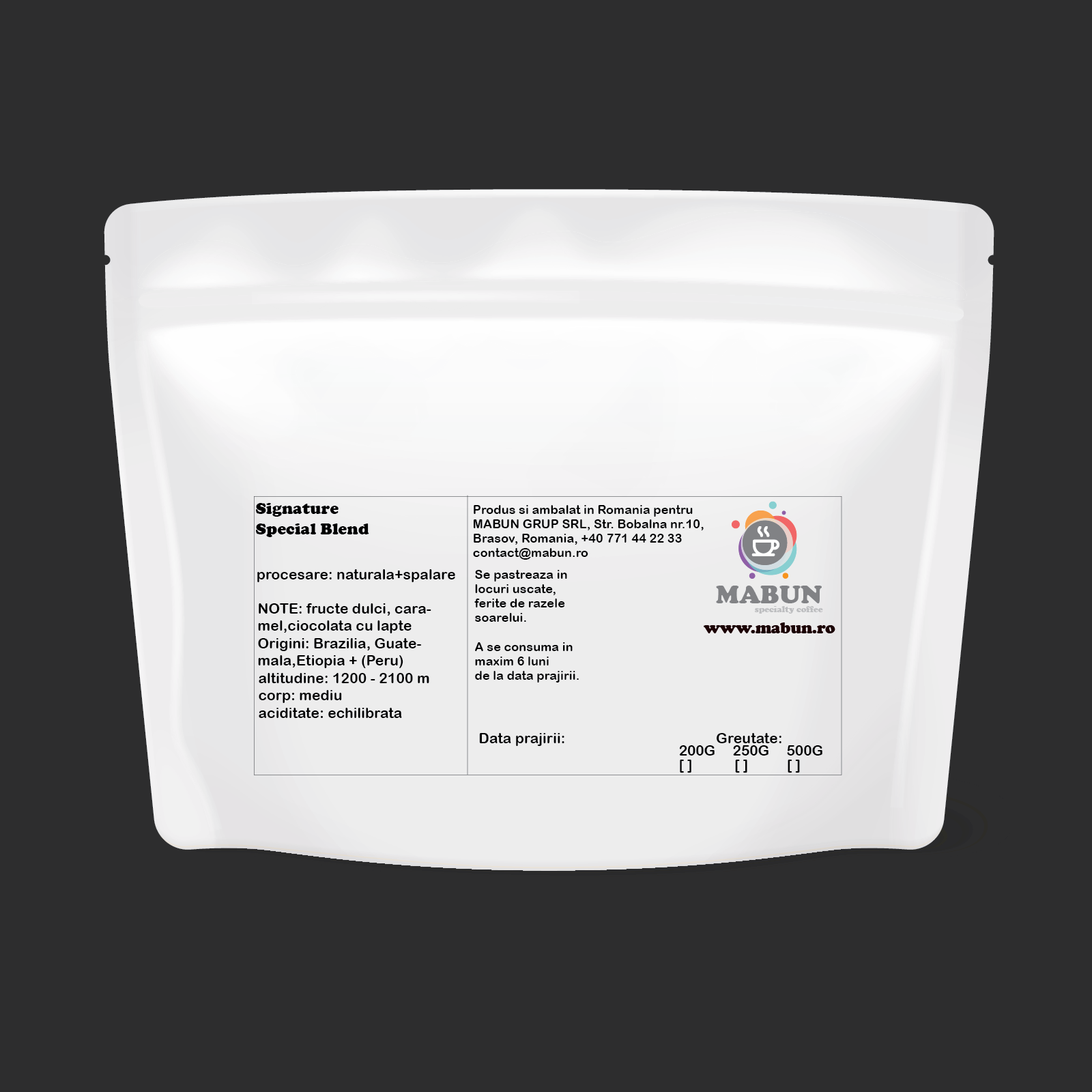 La Mabun, ne dedicăm selecției celor mai fine boabe de cafea de specialitate din lume. "Signature Special Blend" reflectă angajamentul nostru de a oferi doar cea mai bună cafea de specialitate.
